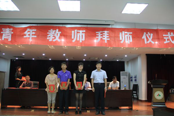 吴兆刚副校长宣读了学校《关于聘任吴建新等同志为学校青年教师导师的决定》,校领导向全校22位导师颁发了聘书。随后举行了隆重的拜师仪式。导师和青年教师通过签署培养协议、师徒合影、导师向青年教师赠送礼物、青年教师向导师敬茶、鞠躬等形式完成了拜师过程。导师代表王宁和青年教师代表纵闫先后发言。
