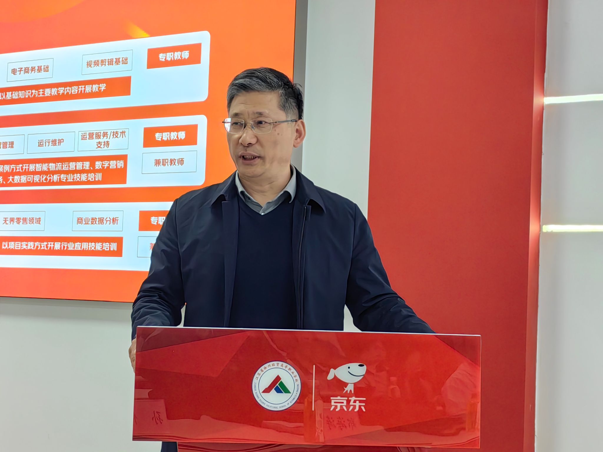 典礼上,太初科技滕洁发表了热情洋溢的致辞,高度肯定了参与直播实训学生的专业素养和积极态度,回顾了项目合作取得的丰硕成果。他强调,太初科技始终重视人才培养,致力于通过深度的产教融合,为行业输送高质量、应用型人才。他表示,将继续加大投入,优化实训项目,引入直播产品生产线、建立物流云仓,为更多学生提供宝贵的实践平台和机会。