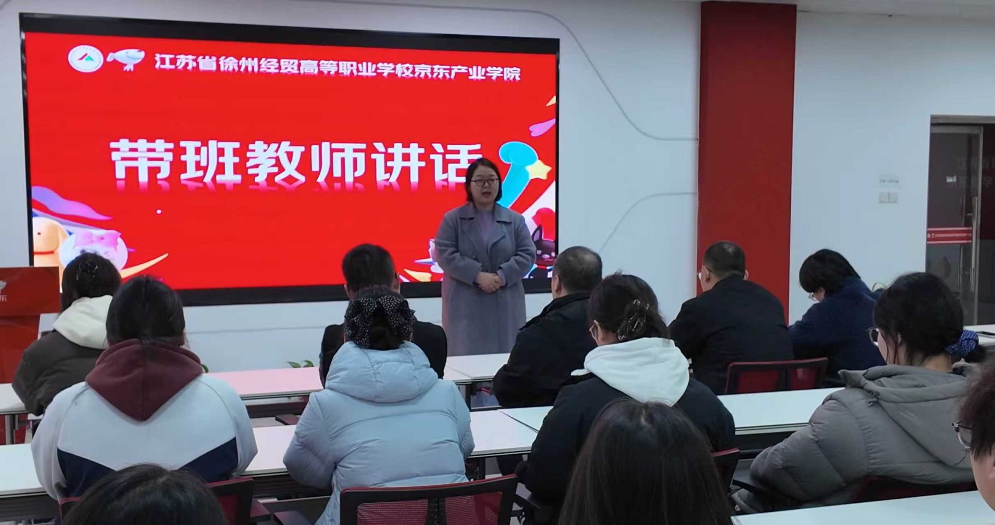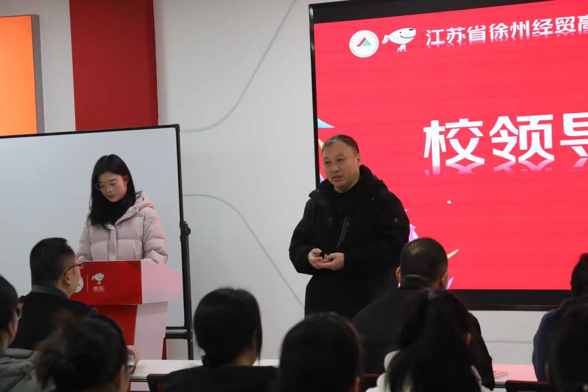11月17日上午,京东数字经济产业学院短视频拍摄与剪辑制作短期实训培训班开班仪式在京东数字经济产业学院路演室顺利举行。本次培训旨在紧扣数字经济发展浪潮,提升学生短视频创作核心技能,为就业创业筑牢基础,商贸系主任郑海涛、京东教育曹冲、王婧伊老师、物流教研室主任张梦瑶、班主任李姝洁及物流专业无课老师,物流高职22级全体参训学生参加了开班仪式。会议由商贸系优秀毕业生杨若瑄主持。