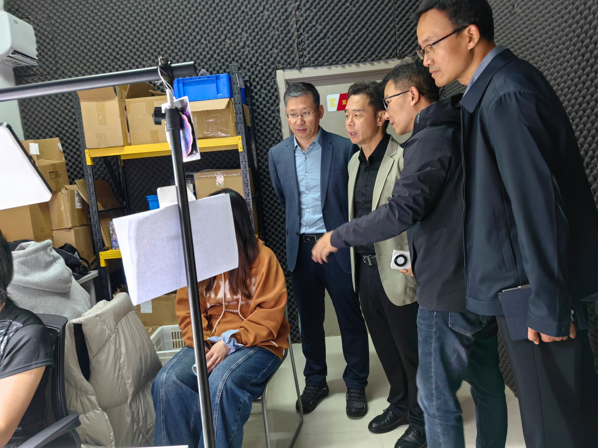 黄院长一行参观了国家级虚拟仿真实训基地、青春电商谷、太初科技产教融合直播基地,与太初科技企业几位领导进行了深入交流,对我系引进企业真实项目,深化产教融合,改进教学模式,提高学生实践能力,实现了人才链与产业链无缝对接、课堂与工厂的无缝衔接的做法给与了高度评价和赞许。