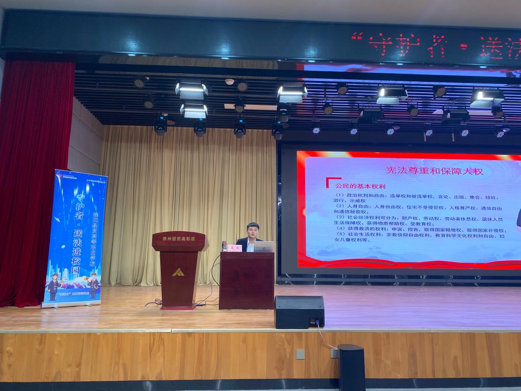 吴狄律师为在场师生带来了一场精彩的“宪法在我心中”法治公开课,他根据高职学生的年龄特点,结合典型案例,以我国宪法的历史为切入点,详细讲述了我国宪法的诞生、演变和发展。并结合实际案例生动地讲解了我国宪法规定的公民权利及义务等内容,帮助学生们更好地理解宪法作为根本法的基本作用,更好地体会宪法温度、感受宪法力量。