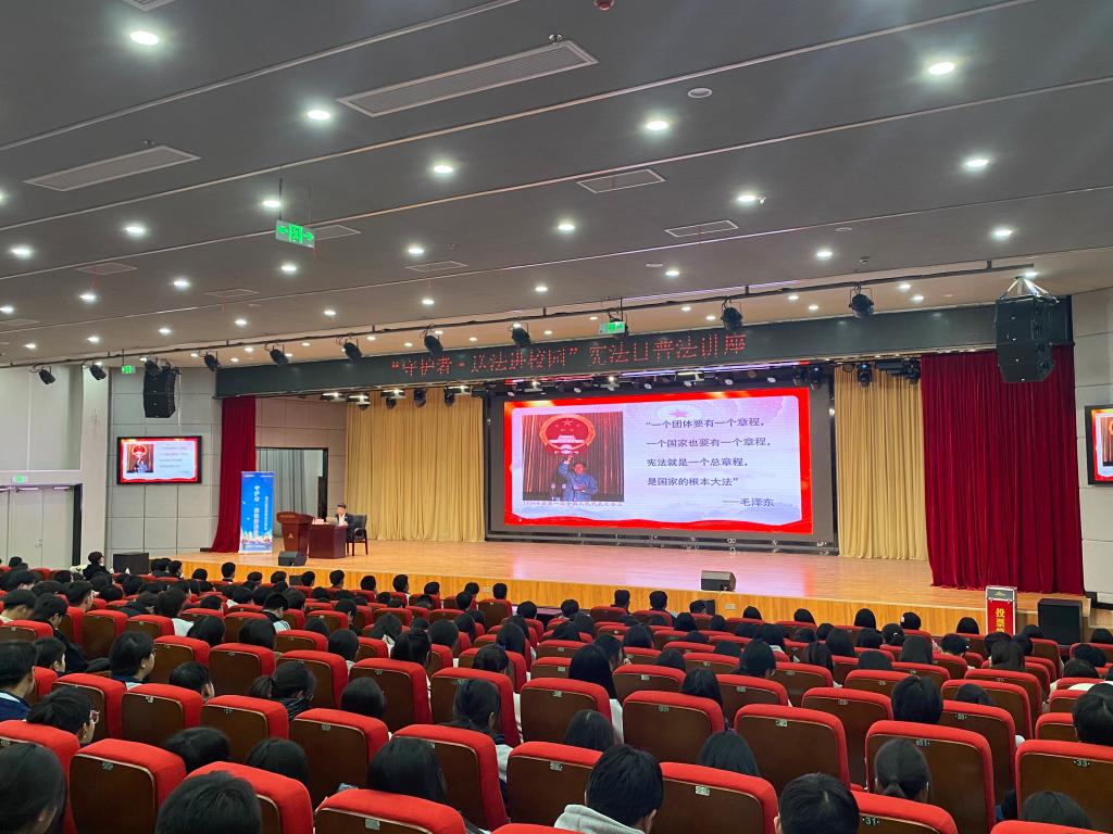 为落实开展2023年“12.4”宪法宣传周活动要求,深入学习贯彻习近平法治思想,大力弘扬宪法精神和社会主义法治精神,进一步引导团员和青年增强法治观念,争做学法、知法、守法的好青年。12月7日下午,校团委特邀请江苏省律协青年律师工作委员会委员、徐州市律协青年律师工作委员会副主任吴狄律师到校开展普法讲座,各系学生代表300余人参加活动。