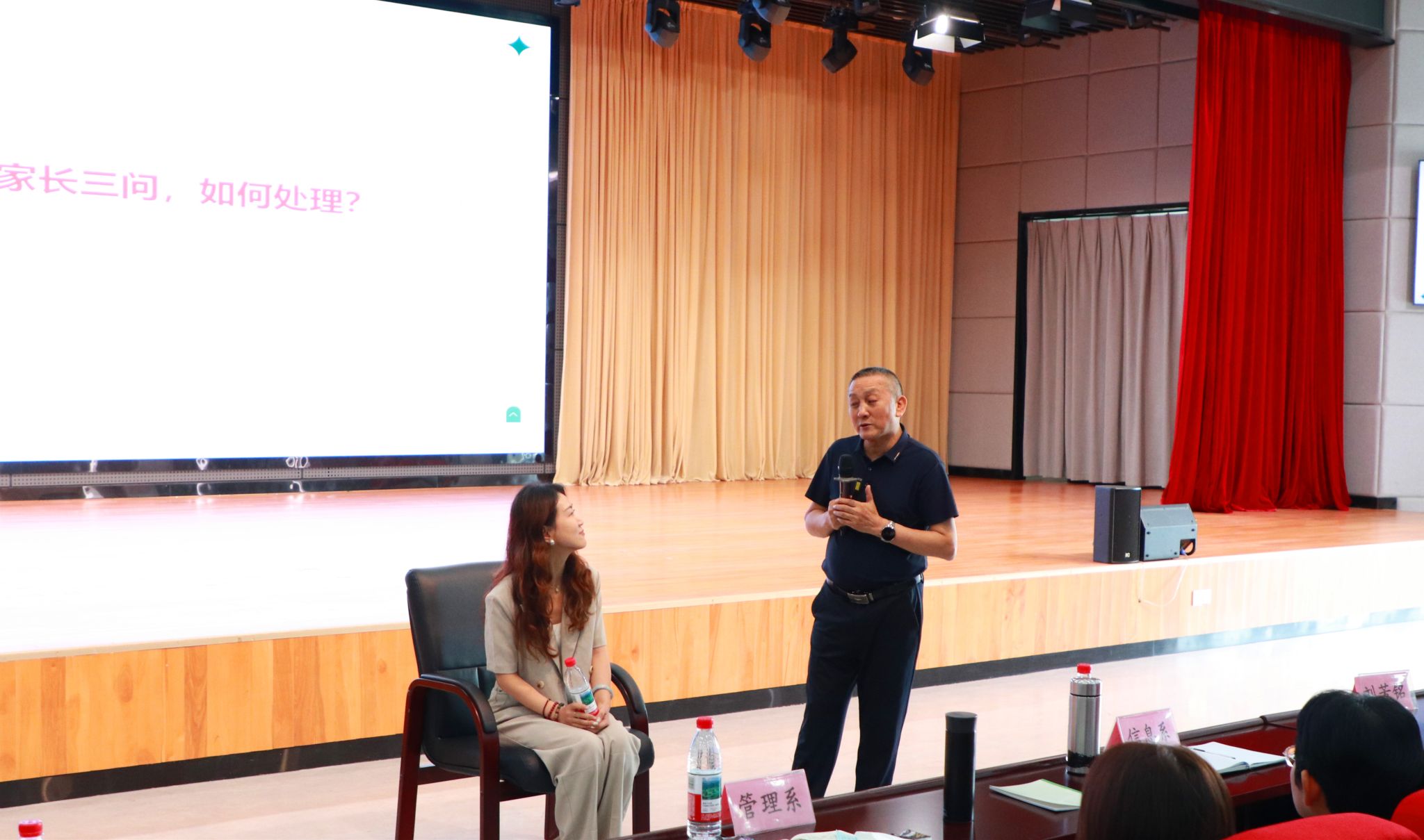 下午,学校优秀班主任“传经送宝”,分享育人经验。继续教育处处长李素英以《高效班主任:忙而不茫的偷懒艺术》为题,从“六点高效抓手”切入,分享“高效班主任”的“偷懒艺术”,实现“用智慧替代蛮力”;机电工程系王亚老师则以《爱与责任,点燃教育激情》为题,讲述自身以 “爱”为基、以“责任”为纲搭建师生信任桥梁的育人故事,其全情投入的育人态度、创新务实的管理方法,为在场班主任提供了诸多可借鉴、可落地的宝贵经验。