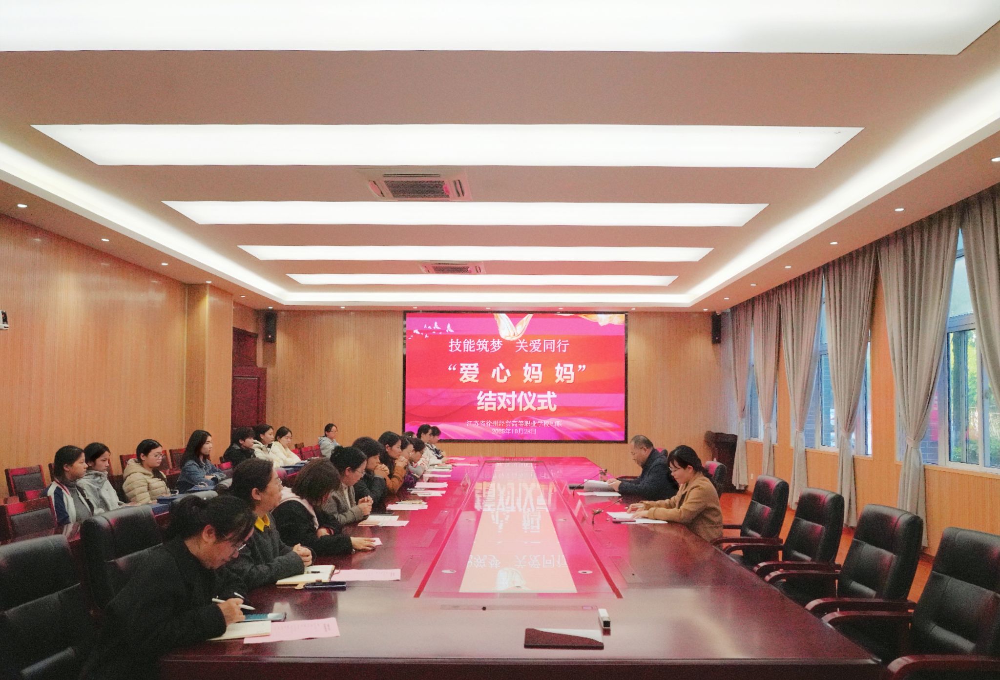 金秋送爽,温情满园。10月28日下午,学校“技能筑梦·关爱同行”爱心妈妈关爱活动结对仪式在智能会议室举行,党委委员、副校长杨政出席活动并讲话,妇联执委全体成员、“爱心妈妈团”成员和结对学生参加活动,共同见证充满爱与希望的“双向奔赴”。