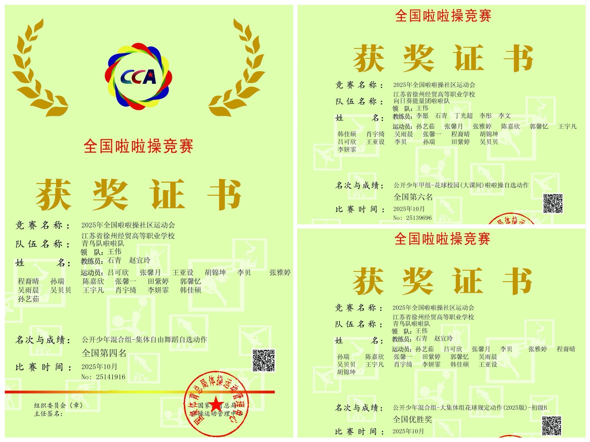 此次全国啦啦操社区运动会成绩的取得,不仅是对我校啦啦操项目教学训练与组织工作的高度肯定,更是校园体育文化建设成果的生动展现。学校将以此次获奖为契机,持续深化“体教融合”理念,进一步丰富校园体育文化内涵,让体育精神在校园中蔚然成风,为培育全面发展的高素质技术技能人才注入更多活力。