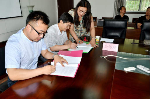 2015年7月8日上午,我校与徐州景明设计装饰公司举行校企合作签约仪式,黄学勇校长和唐龙总经理代表校企双方在协议书上签字。签约仪式前,黄学勇校长亲切会见了景明设计装饰公司唐龙总经理一行四人,并向他们介绍了学校的发展情况、专业建设情况以及校企合作开展情况,希望校企双方共同努力,加强深度合作,实现校企双赢,互惠互利,为经济社会发展培养更多的高素质技术技能型人才。唐龙总经理介绍了企业发展情况以及对开展校企合作的想法及下一步工作思路,争取把景明设计班打造成为校企合作的标杆。副校长吴建新、教务处处长张格宇和艺术设计系主任李新华、副主任金伟超、杨春芳以及装潢艺术设计专业的全体老师参加了签约仪式。